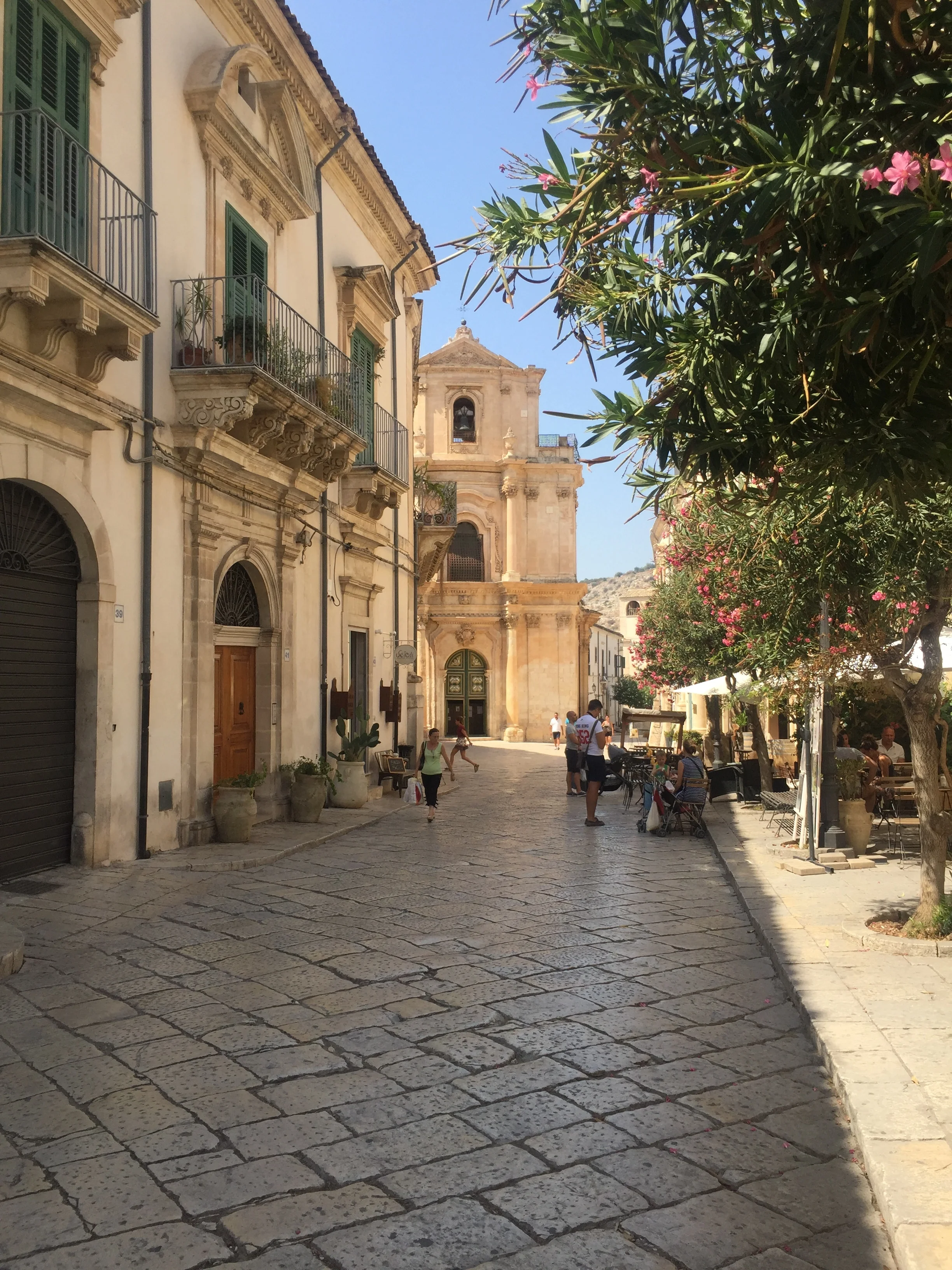 We had a whole two weeks to enjoy so after a few days bouncing between the beach and the pool we decided some exploring was in order. The closest town is Scicli, scenically positioned in the valley that looks like it's been left unchanged for at least the last two hundred years. With the exception of a architectural blip in the town square where once a monastery stood. some genius in the late seventies decided it would be better off blest with the modernist monstrosity that represents the brutalist ideas of the time. The town is bellissima!! Scattered with stunning churches and paved with the smooth stone quarried from the local landscape. The streets weave up the hillsides while the days laundry bellows in the breeze, draped from the balconies above. Being August it's hot! Highs of 38, after a little wander around the boutiques we find a wonderful antique store that sells amongst other artifacts from the 18th and 19th centuries a collection of fascinating erotic art, the piece that caught my eye was a French painting but once the owner saw my interest we got the full tour including Japanese silk paintings and a crystal dildo used to treat fever apparently! Not what I was expecting to find in this unassuming little town. The heat was getting to us so the next stop was for a granita in the picturesque square before we headed back to the villa to cool off in the pool.
